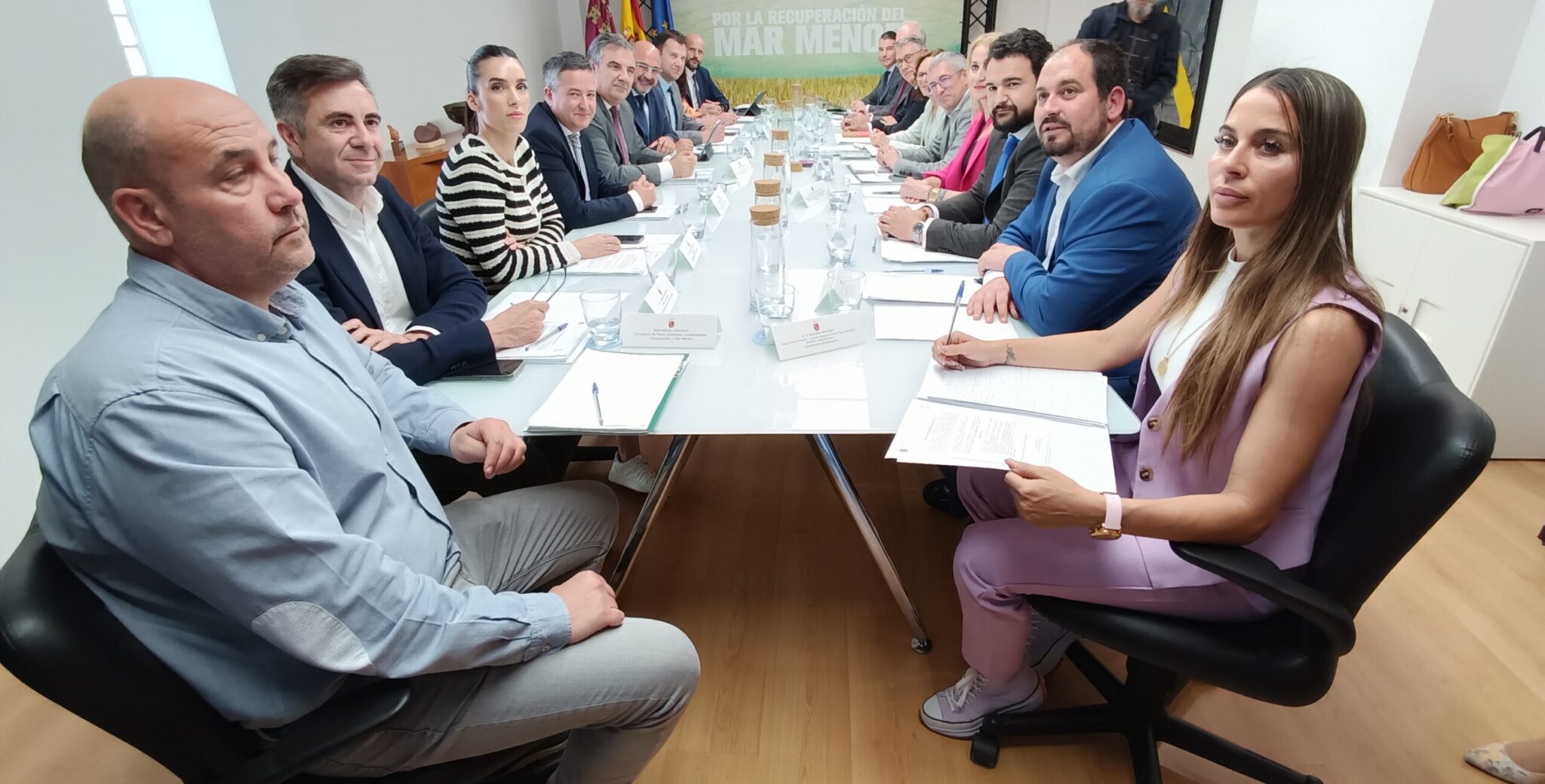 A la reunión han acudido representantes de los ayuntamientos pertenecientes a la cuenca vertiente del Mar Menor, el consejero de Medio Ambiente, Universidades, Investigación y Mar Menor, Juan María Vázquez; y el secretario de Estado de Medio Ambiente, Hugo Morán.