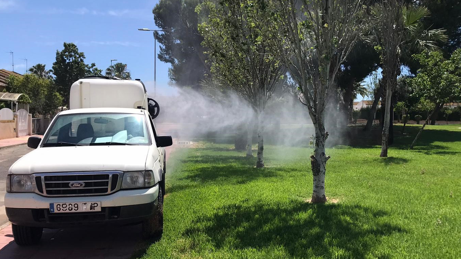 El ayuntamiento de los alcázares ha reforzado las tareas de fumigación contra el mosquito tigre, en esta ocasión lo ha hecho en zonas deportivas del club de tenis y campo de la torre