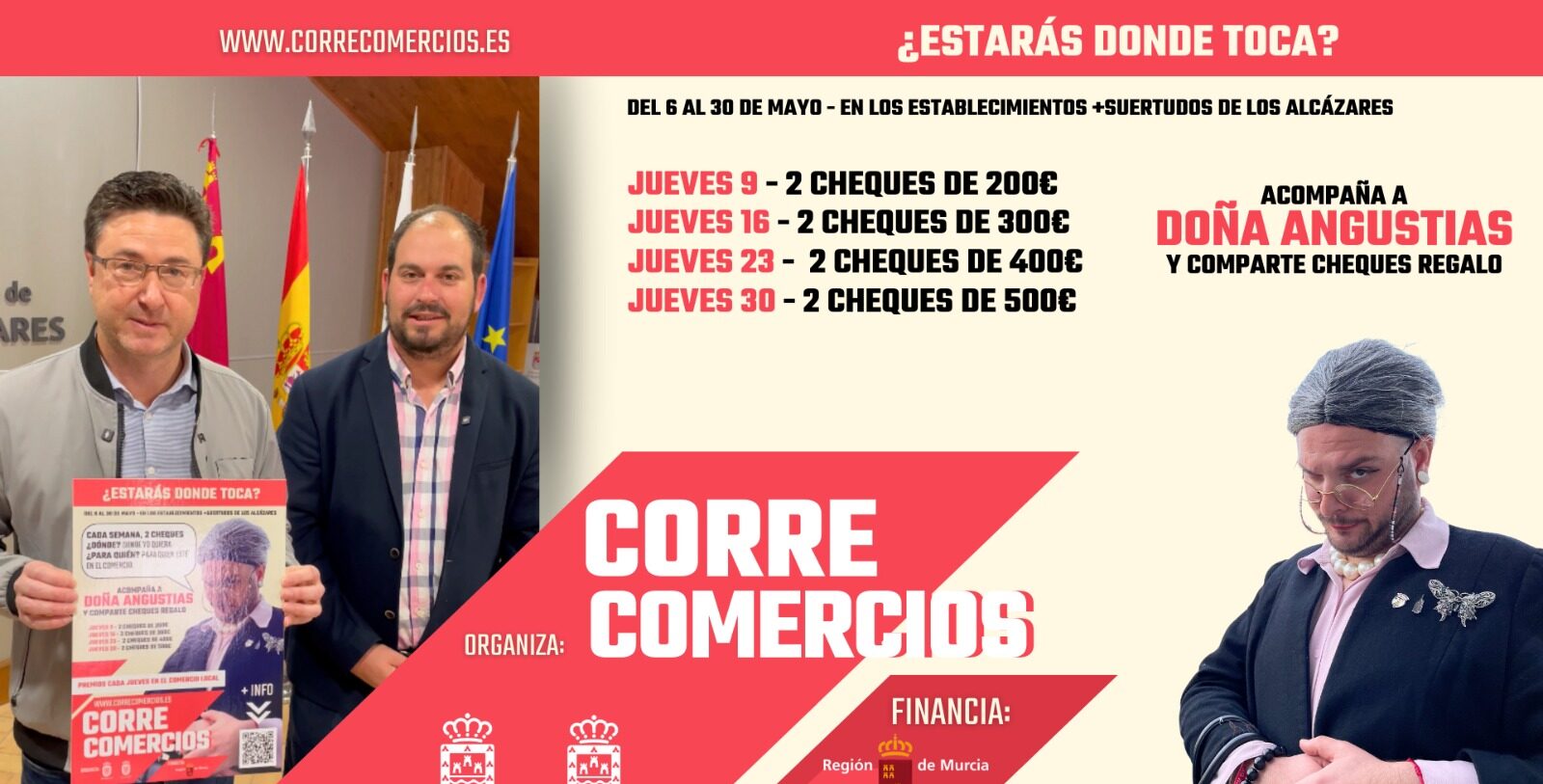 La concejalía de Impulso Económico del Ayuntamiento de Los Alcázares vuelve a poner en marcha una nueva campaña para impulsar las compras en el comercio local. En esta ocasión, la campaña llega bajo el nombre ‘Corre Comercios’ y tiene una madrina muy especial: Doña Angustias, del programa ‘Ailoviu’, de la 7tv Región de Murcia.