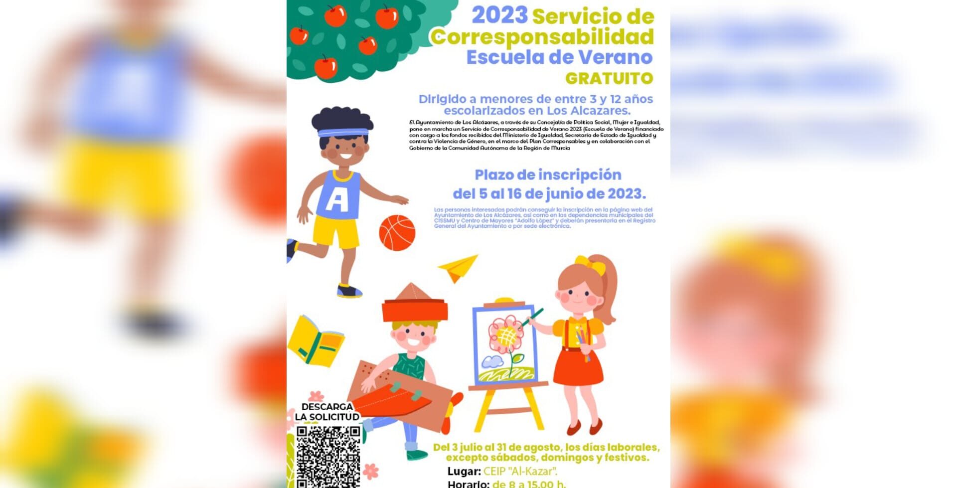 El Ayuntamiento de Los Alcázares, a través de la concejalía de Política Social, Mujer e Igualdad, pone en marcha un Servicio de Corresponsabilidad de Verano 2023, la conocida como Escuela de Verano gratuita, gracias a los fondos recibidos del Ministerio de Igualdad.