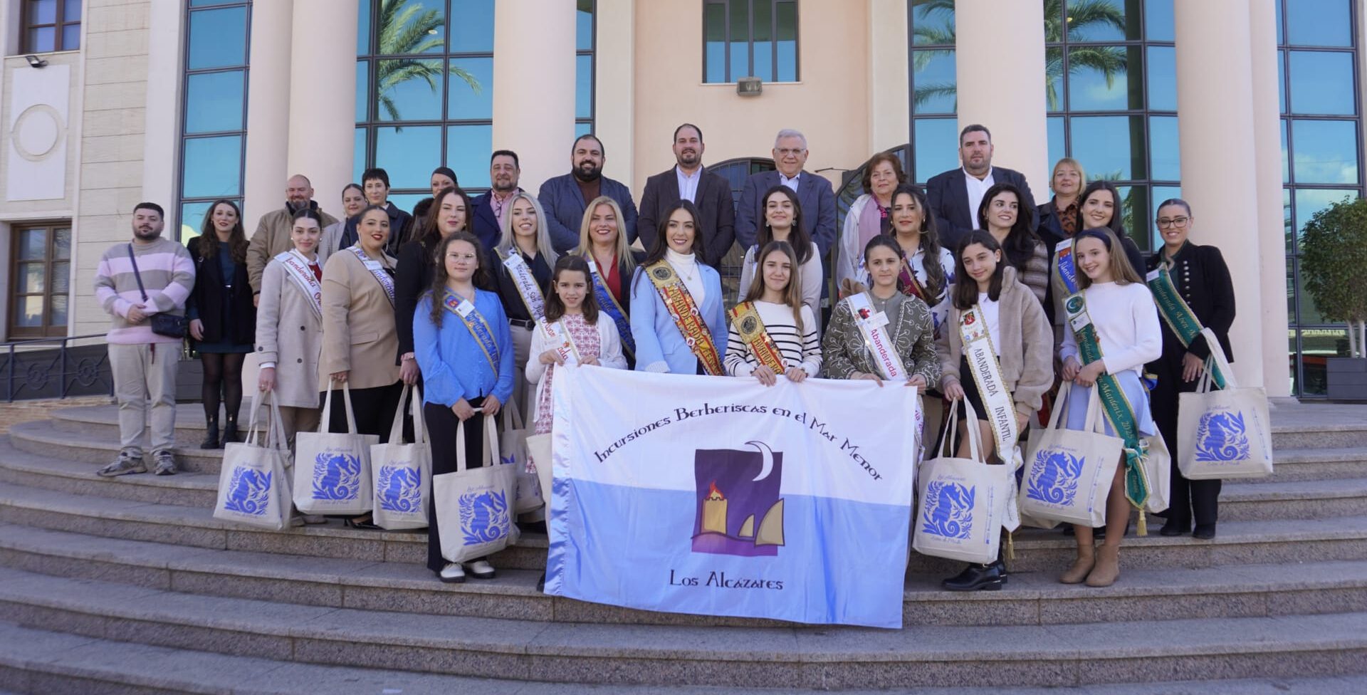 Mario Pérez Cervera agradeció la visita, intercambió unos obsequios con las candidatas y con el presidente de la Federación de Moros y Cristianos, Alfonso Gálvez; y aprovechó para invitar a todos los festeros y festeras a conocer y disfrutar las Incursiones Berberiscas de Los Alcázares que se celebran en Semana Santa.