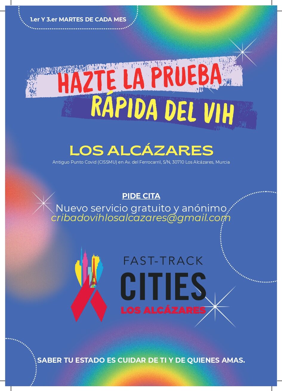 Y es que a partir del mes de diciembre, las pruebas gratuitas de VIH podrán realizarse de forma periódica en el CISSMU de Los Narejos, el primer y tercer martes de cada mes, de 16.30h a 19.30h, mediante cita previa en el correo cribadovihlosalcazares@gmail.com.