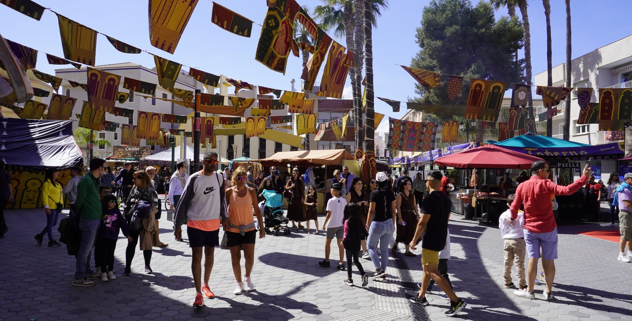 Las calles cubiertas de paja, las banderolas, la música, los puestos entoldados y los olores que se apoderan de cada rincón nos harán viajar al medievo durante las Incursiones Berberiscas mientras recorremos las calles del casco urbano de Los Alcázares.
